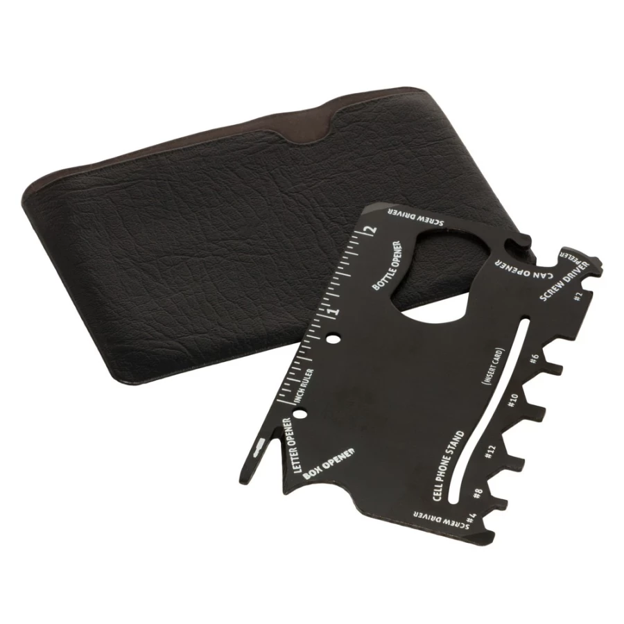 Dodatkowe informacjeNarzędzie wielofunkcyjne w etui, 9 funkcji: linijka, mini wkrętak, otwieracz do kartonu, 2x wkrętak, klucze płaskie (#2, #4, #6, #8, #10, #12), podstawka pod telefon (karta nie jest dołączona), otwieracz do puszek, otwieracz do butelek
